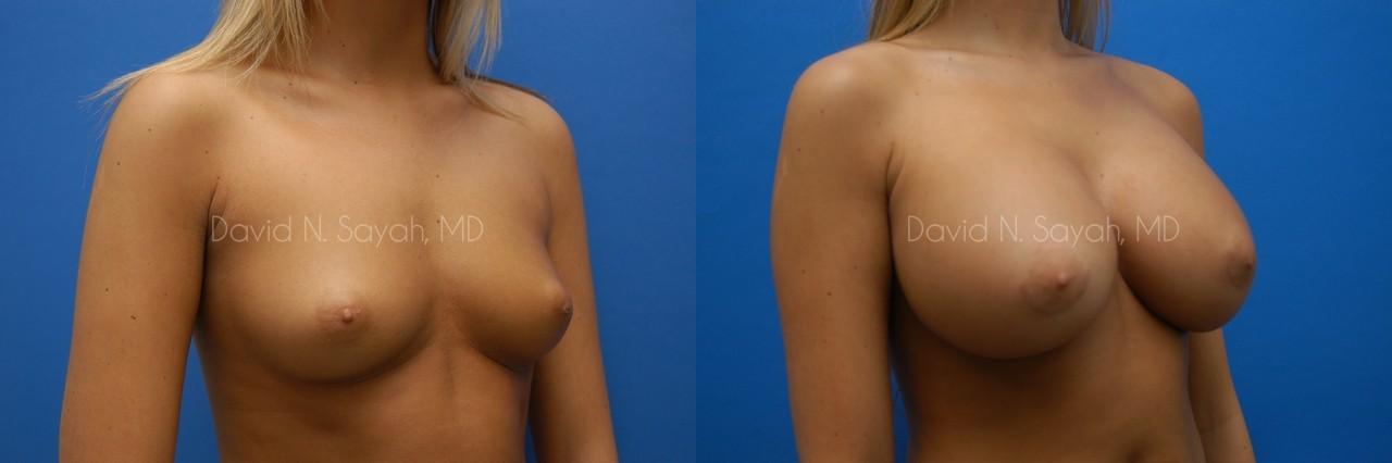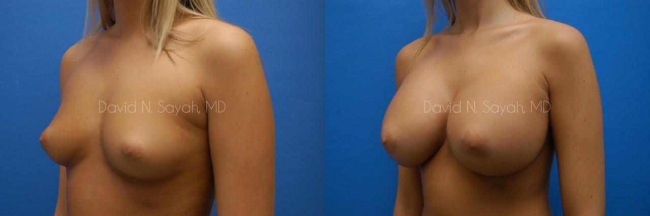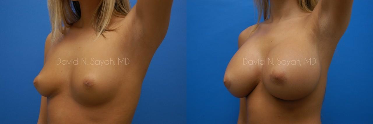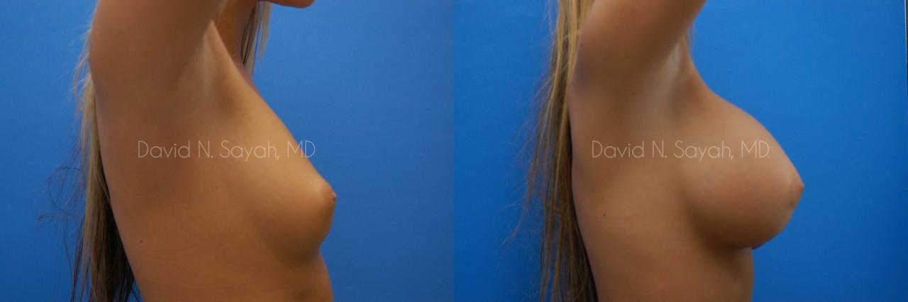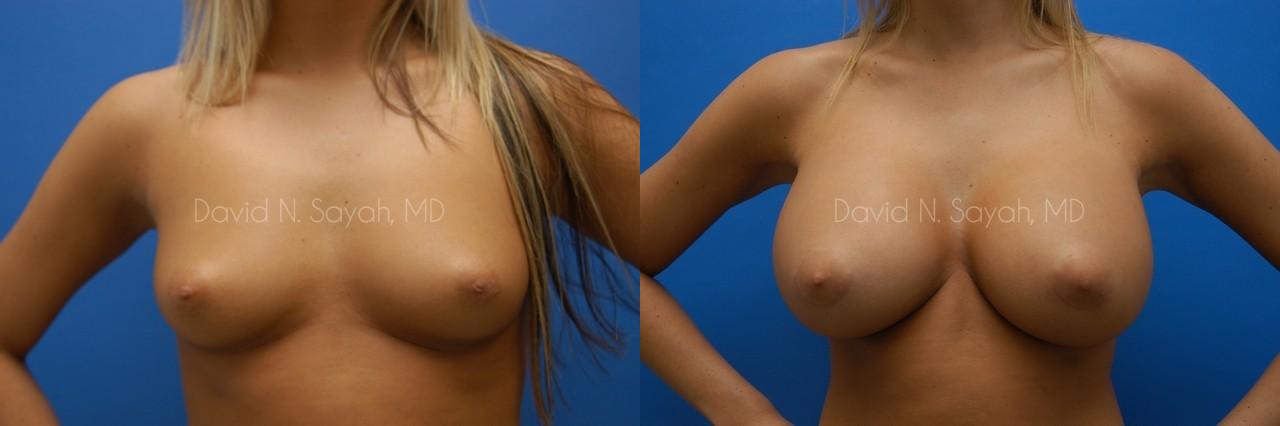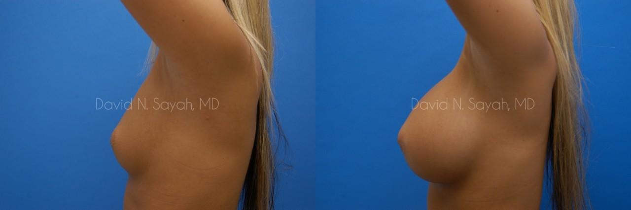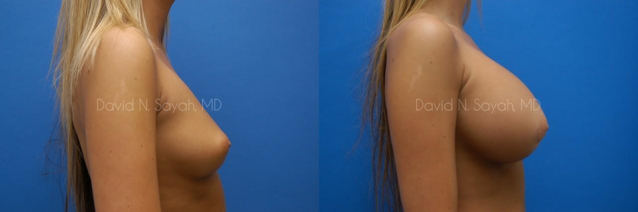 This 24-year-old young woman came to the office of Dr. David Sayah interested in breast augmentation surgery at our Beverly Hills facility. The patient was unhappy with the size of her breasts and wanted to increase their size from her current B cup to a full D.
