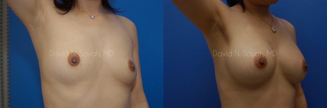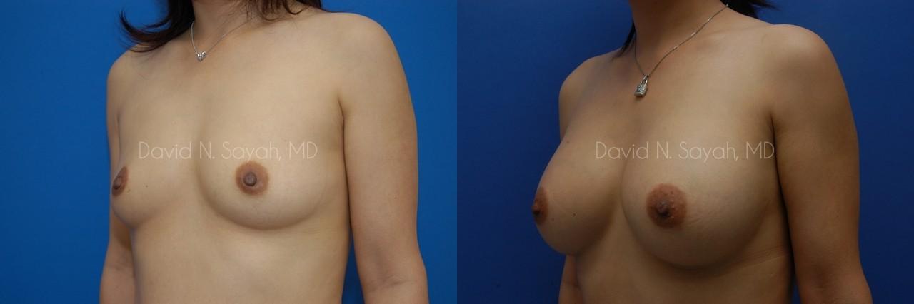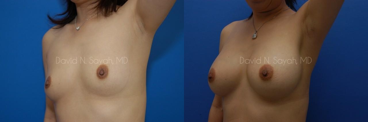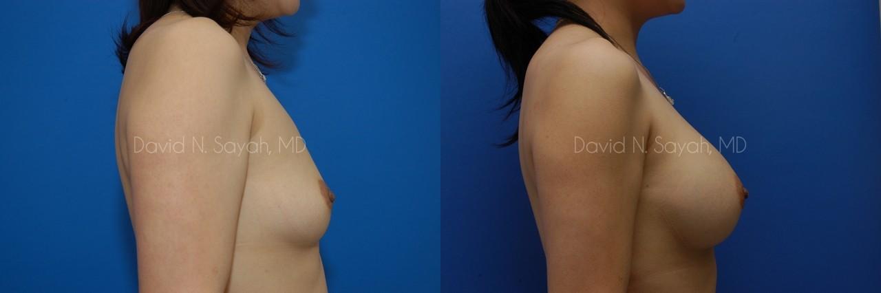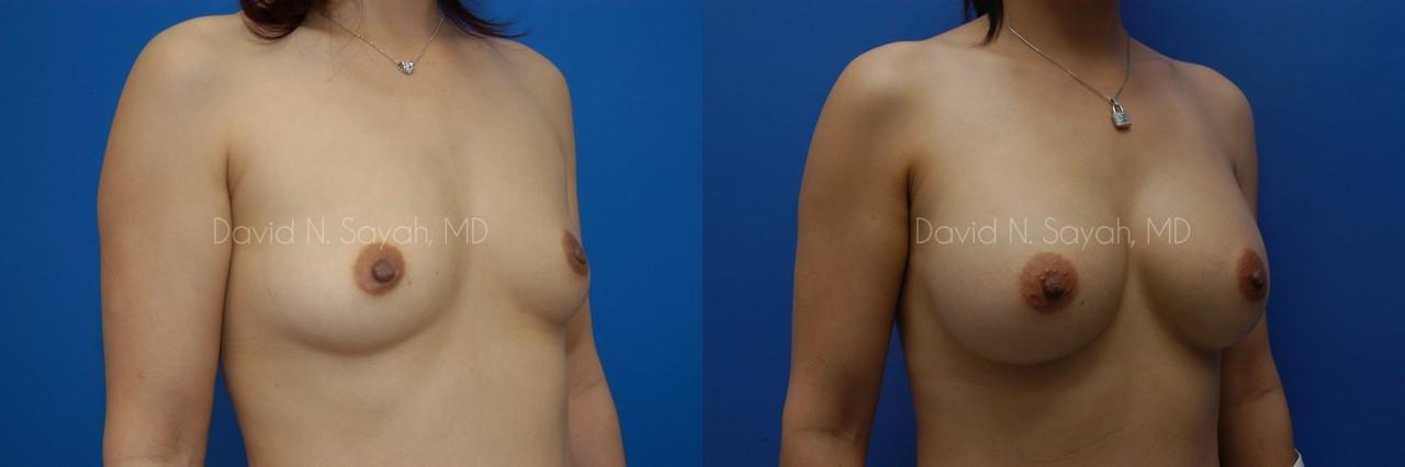 This 38-year-old woman came to the office of Dr. David Sayah because she was unhappy with the size of her small breasts. The patient hoped that with breast augmentation surgery she could increase her cup size to her ideal C cup.