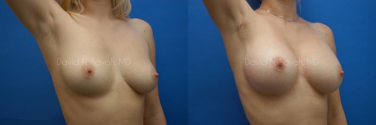 As you can see in her “after” photo, Dr. Sayah was able to increase her cup size while still maintaining a natural look that is similar to the shape of her breasts before surgery. The patient is very happy with the outcome of her surgery.