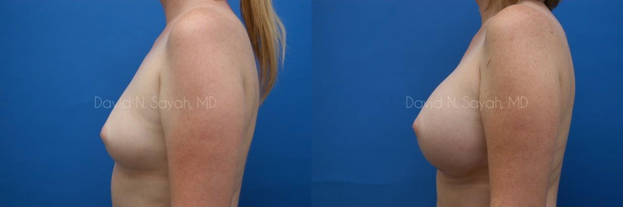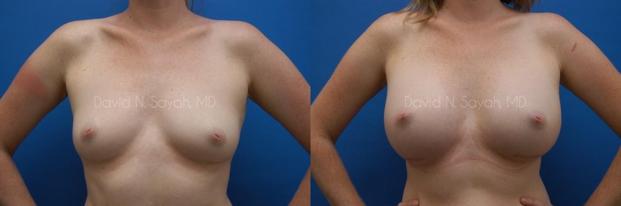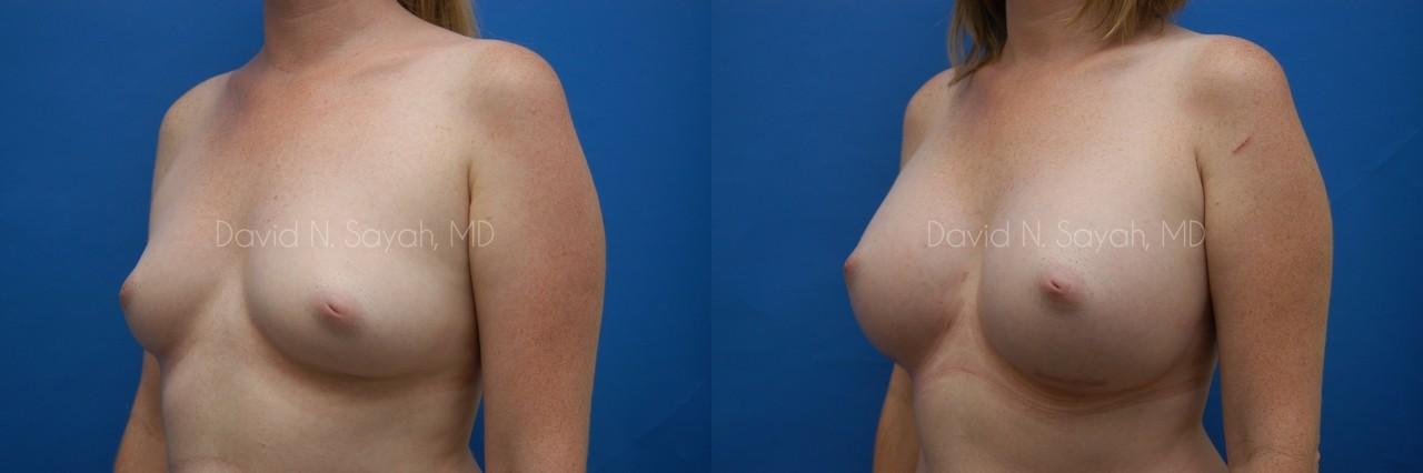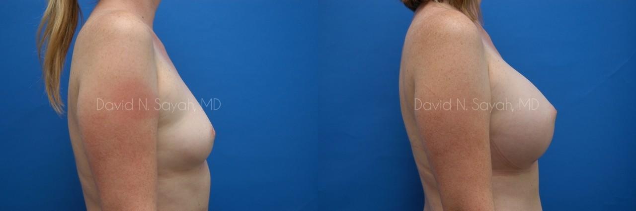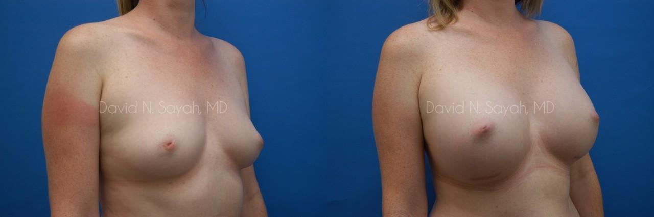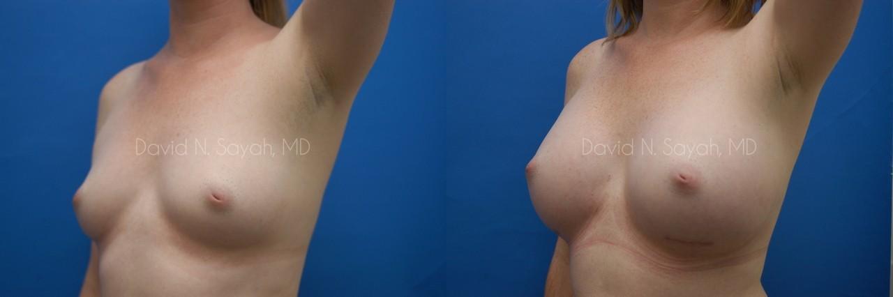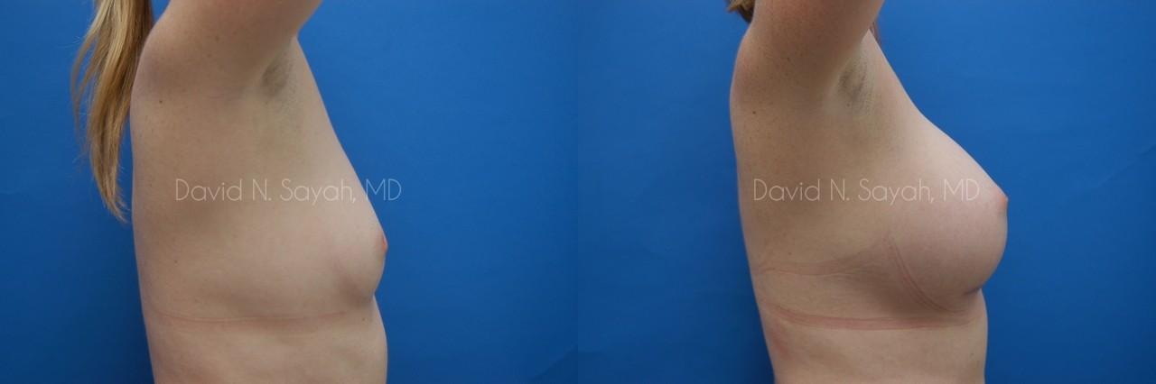 This 34-year-old woman came to the office of Beverly Hills plastic surgeon Dr. David Sayah because she was interested in breast augmentation. The patient felt that her breasts were too small for her wide chest and had been considering implants that would increase her cup size for quite a while.
