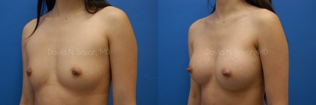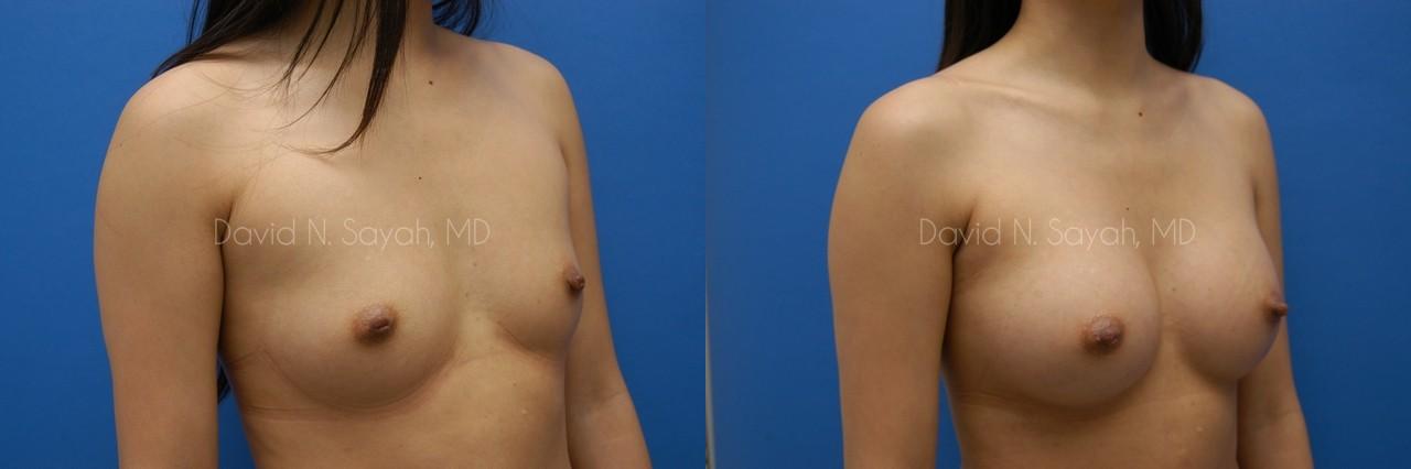 This 25 year-old young woman came to the office of Dr. David Sayah because she was unhappy with the size of her small breasts. She was now considering breast augmentation using implants.