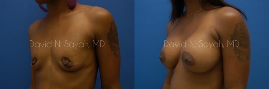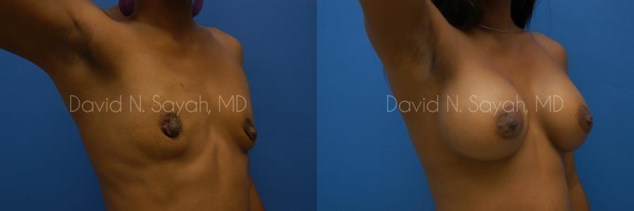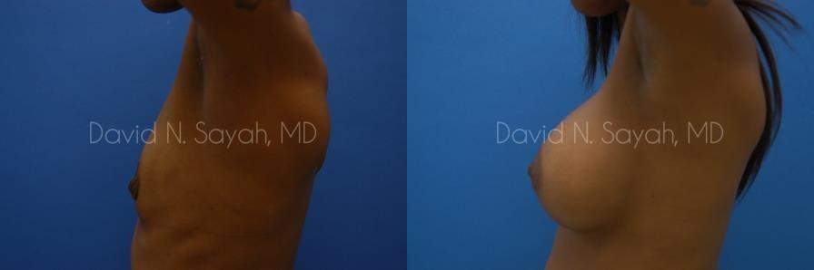 This 31-year-old woman sought a consultation with Dr. David Sayah at our Beverly Hills plastic surgery facility to discuss the details of a bilateral breast augmentation. The patient is a mother of small children and had noticed a dramatic decrease in her breast tissue following pregnancy. She felt that after nursing her children her breasts looked stretched out and “empty.”
