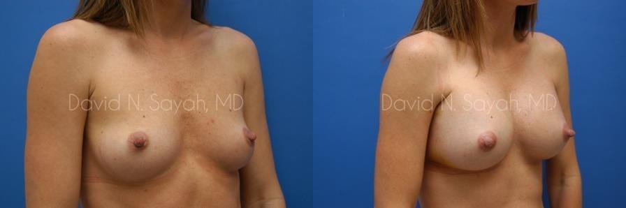 This 38-year-old woman came to the office of Dr. David Sayah because she was unhappy with the appearance of her small breasts. The patient is a mother of three children. With her youngest child starting school and out of the house she felt it was time for a makeover and booked a consultation at our Beverly Hills facility to discuss bilateral breast augmentation.