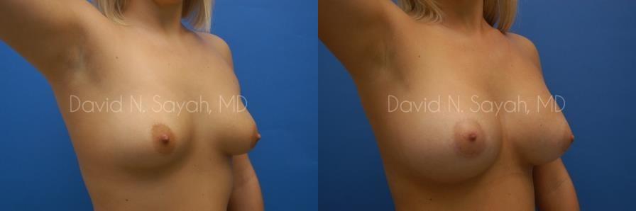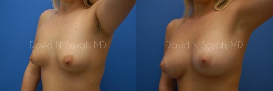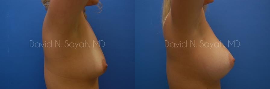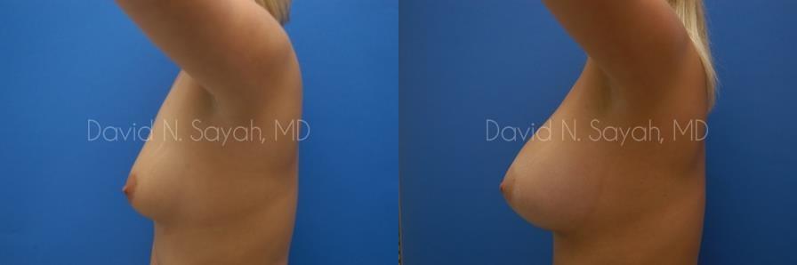This 22-year-old young woman came to the office of Beverly Hills plastic surgeon Dr. David Sayah for a consultation for bilateralbreast augmentation. She disliked the size and shape of her breasts and wanted to increase her cup size from a B cup to a full D.