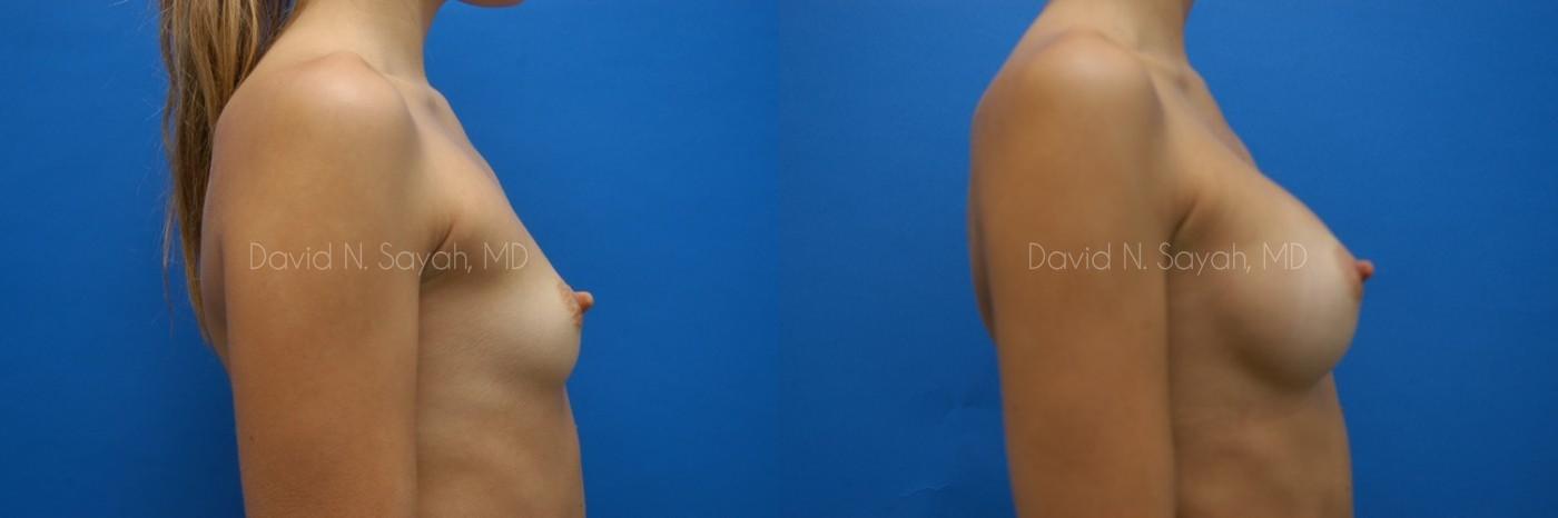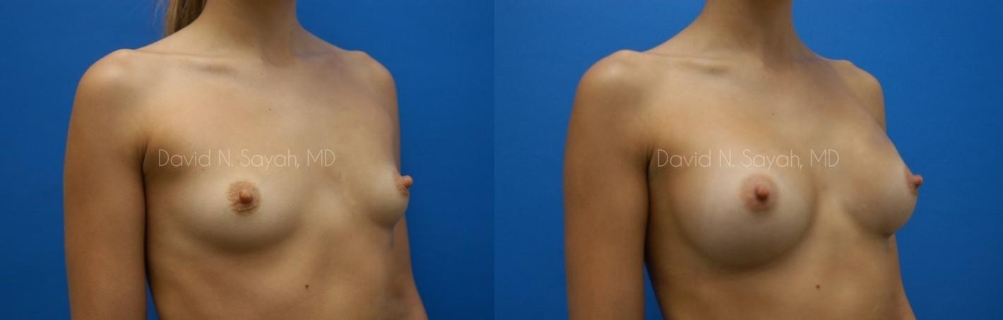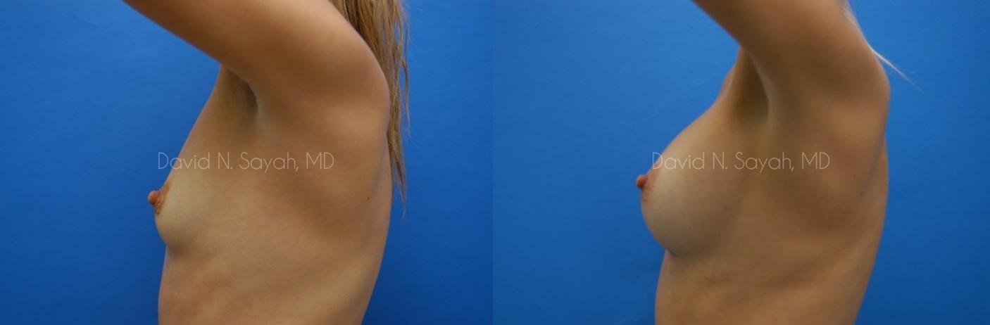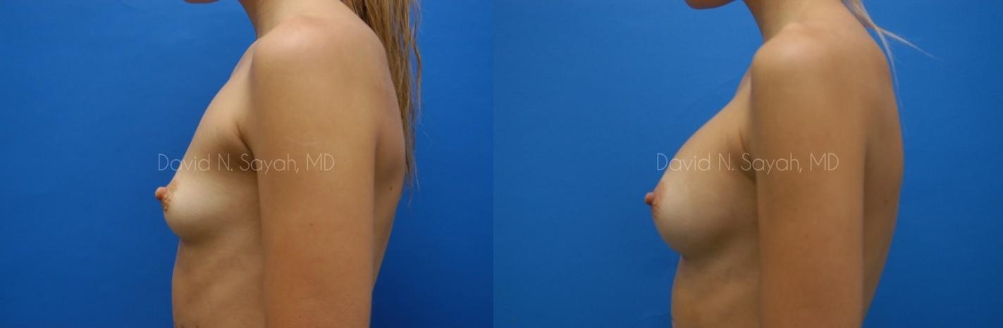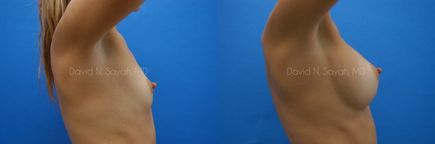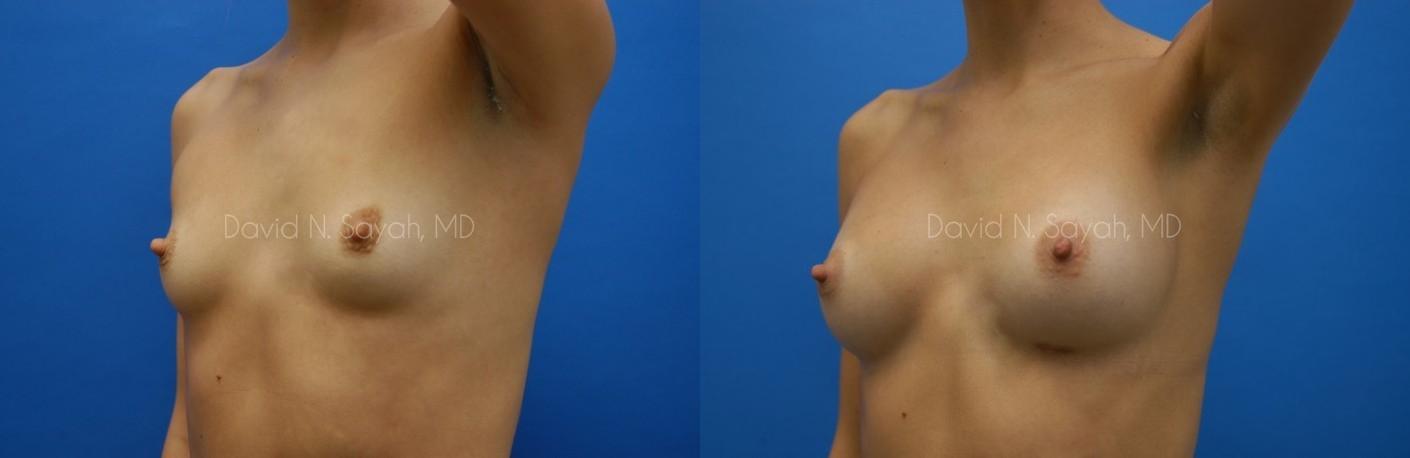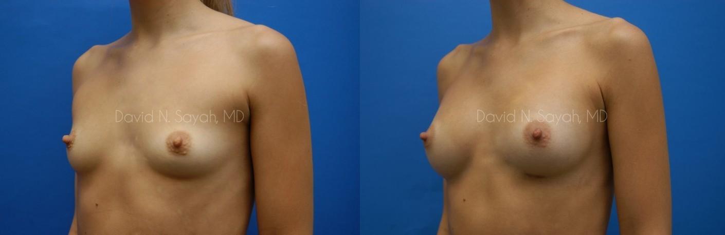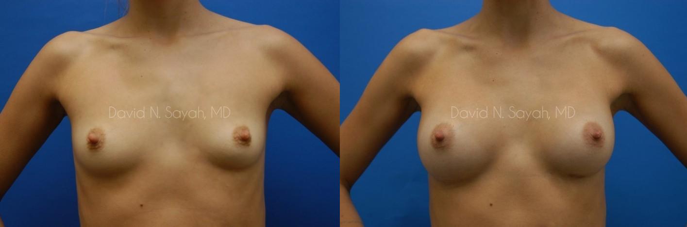 This 25-year-old young woman consulted with Beverly Hills Plastic Surgeon Dr. David Sayah because she was unhappy with the size of her breasts and wanted to increase her cup size from a size 34 A to a full B cup.